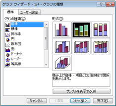 グラフにはいくつかの形式があり、それぞれ適した分野があります。目的に応じて選択しましょう。グラフの形式は、後からでも変更できます。