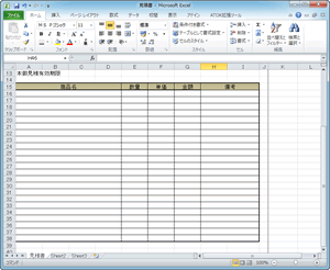 見積もり表を作ります。見出し行には、数量や単価などの項目を入力します。表の範囲を選択し、[セルの書式設定]で罫線を引きます。-