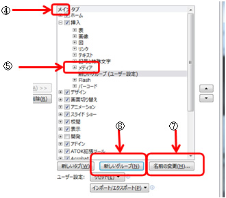 ⑥<新しいグループ>をクリックします。