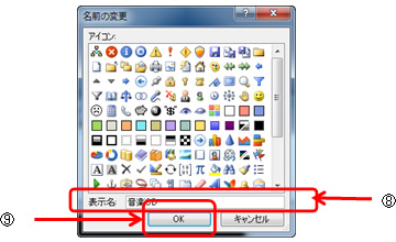 ⑧<表示名>に「音楽CD」などのわかりやすい名前を入力し、⑨<OK>をクリックします。