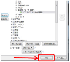 パワーポイント2010の初期設定では、メニューに音楽CDを利用するためのコマンドが表示されていません。以下の手順でコマンドをメニューに追加しましょう。