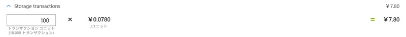 ストレージトランザクション数も入力します。読み取り・書き込み回数を完全に予測することは難しいため、多少多めの概算値を入れても問題ありません。金額影響は大きくないため、今回は100トランザクションユニット(=100万トランザクション)で見積もりを行います。