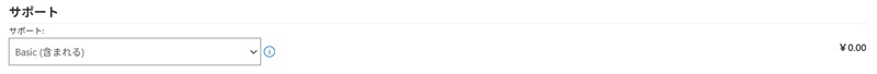 料金確認のステップでは、まずAzureサポートプランを選択します。Azureには5種類のサポートがありますが、料金計算ツール上で選べるのは「Basic(無償)」「Developer」「標準」「Professional Direct」の4種類です。Basicは追加費用がかからず利用できますが、それ以外のプランは月額料金が発生し、サポート範囲やアーキテクチャ支援の有無などが大きく異なります。自社で必要とするサポートレベルを踏まえて選択する必要がありますが、今回は無償のBasicを選びます。