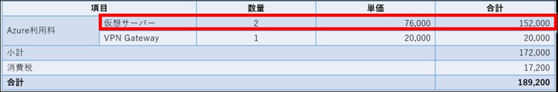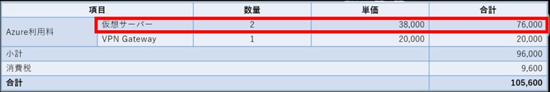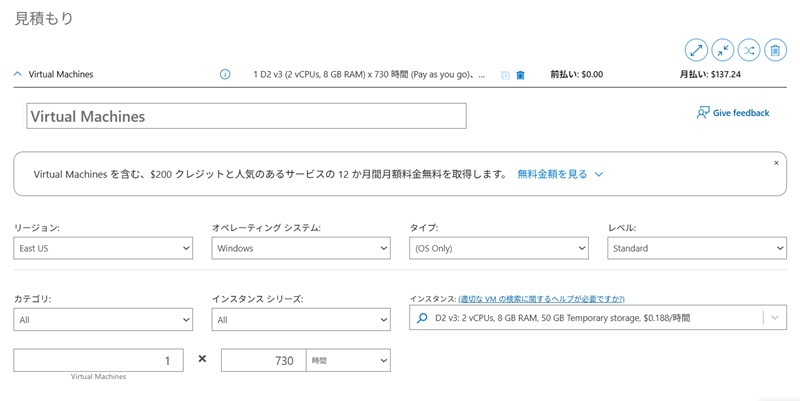 今回は、最も使用されるサービス仮想マシンを例に見積もりしてみます。