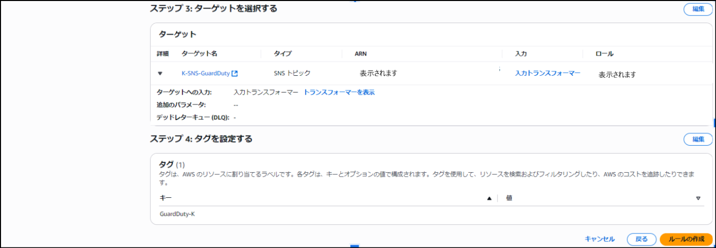 2-3. Amazon EventBridgeルールを作成し、SNSへ転送する