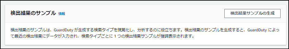 このボタンを押すと、GuardDutyがさまざまな重大度(高・中・低など)のサンプルイベントを擬似的に生成します。