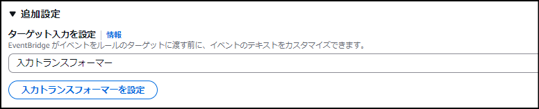 - 「ターゲット入力を設定」の項目で、「入力トランスフォーマー」を選択します。