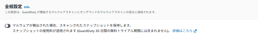 - マルウェア検知時、スナップショットを保持 ※保持されたスナップショットには通常のEBSスナップショットの料金が発生します。