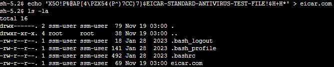 - EC2インスタンス(Linux)に接続し、以下コマンドで疑似的なマルウェアファイルを作成します。