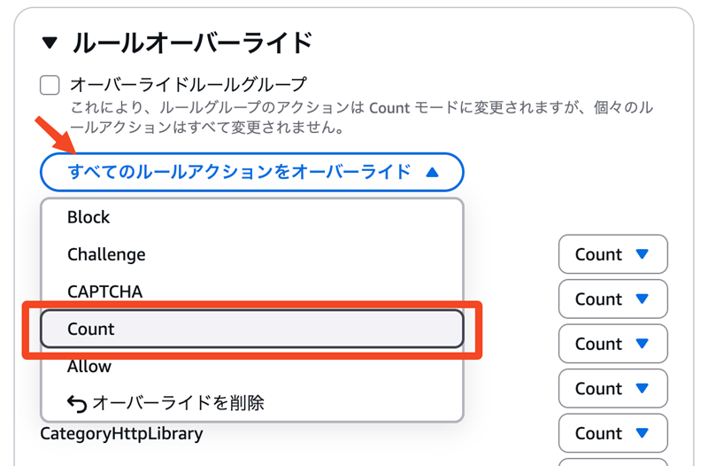 - まずCountモードで1〜2週間程度検証を行い、誤検知やトラフィックの傾向を把握してからBlockを有効化する