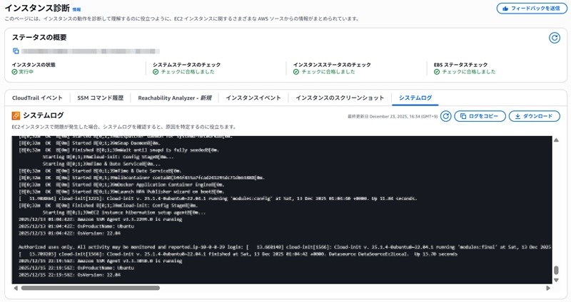 - 対処法: AWS側の障害が落ち着くのを待つか、この後のフェーズ2・ケースBで解説する「Stop/Start」で、元気な物理サーバーへ引っ越してください。