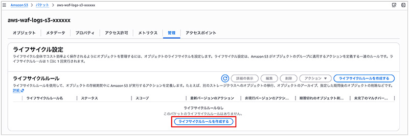 2. 作成したバケットのライフサイクルを任意で設定します
