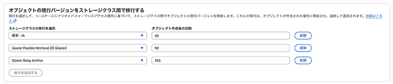 - Glacier や Glacier Deep Archive に移行すればさらに低コストが望めます。