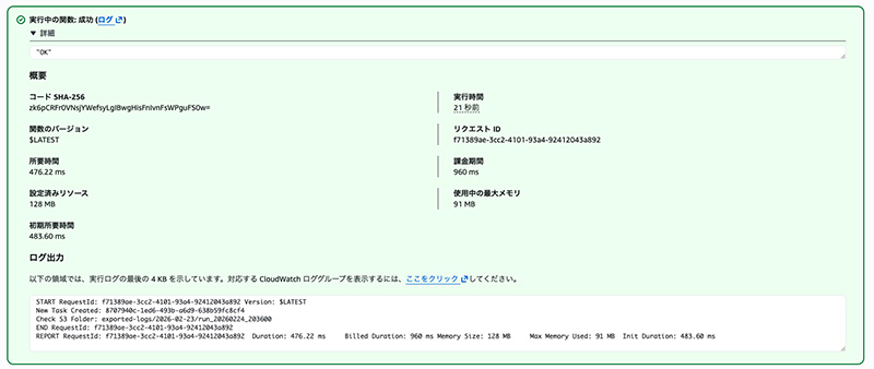 4. 結果はログから確認できます。