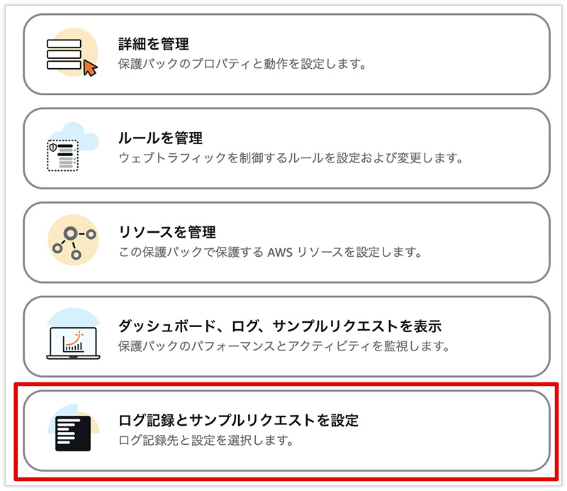 5. 右側のペインから「ログ記録とサンプルリクエストを設定」をクリックします。