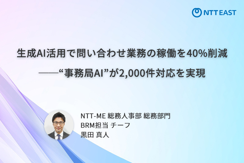 本コラムでは、NTT東日本社内で実現した生成AI活用とRAG技術を活用した新たな業務フローの構築の取り組みについて、プロジェクトを推進した担当者がご紹介します。