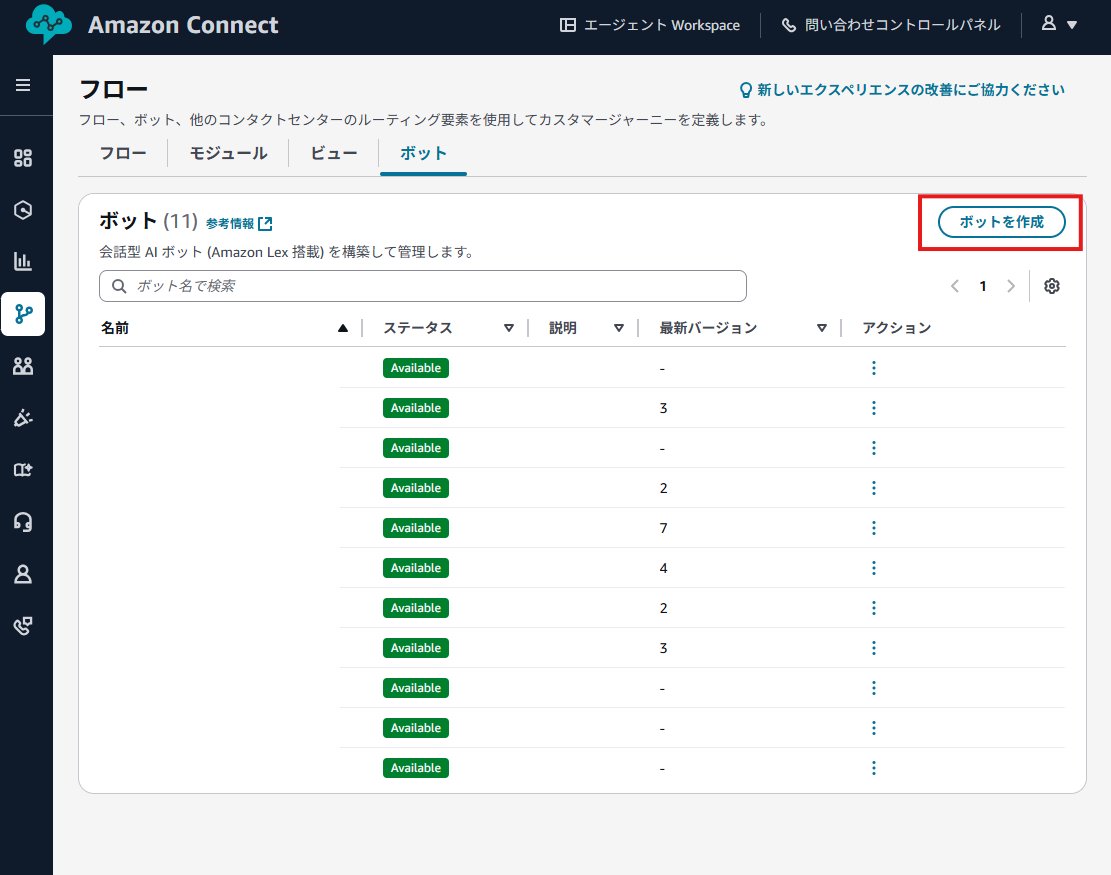 これまでは AWSコンソール上で作成してきましたが、Q in Connectを利用する場合、LexやAIエージェントの実装などすべてをAmazon Connectの管理画面で完結できます。
