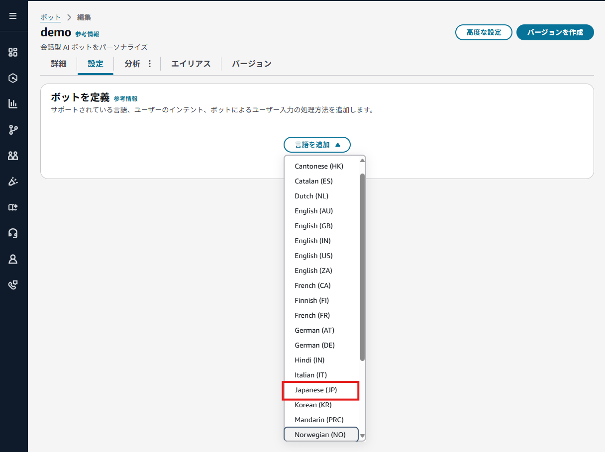 3-2. Lexボットの作成