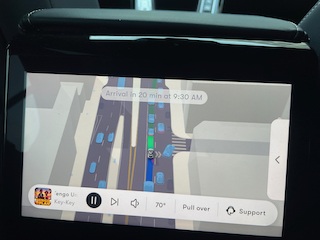 車内では好きな音楽をかけたり、ディスプレイに表示されるリアルタイムの3Dマップを眺めたりと、完全にプライベートな空間です。