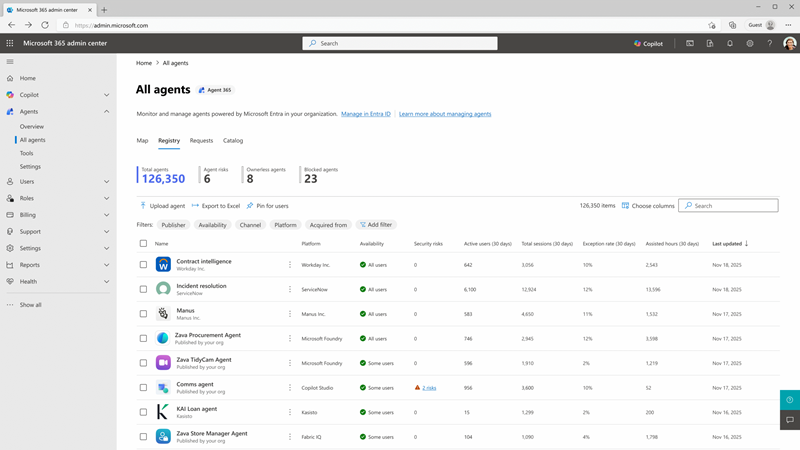 Agent 365はMicrosoft 365 管理センターに組み込まれるコントロールプレーンで、エージェントの登録、権限設定、動きの監視、危険なエージェントの隔離まで一元的に行うことができます。