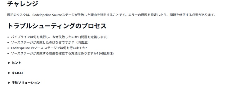 Kiroに「パイプラインのステータスが失敗しているためトラブルシュートを手伝って」と質問すると以下の流れで調査をしてくれました。