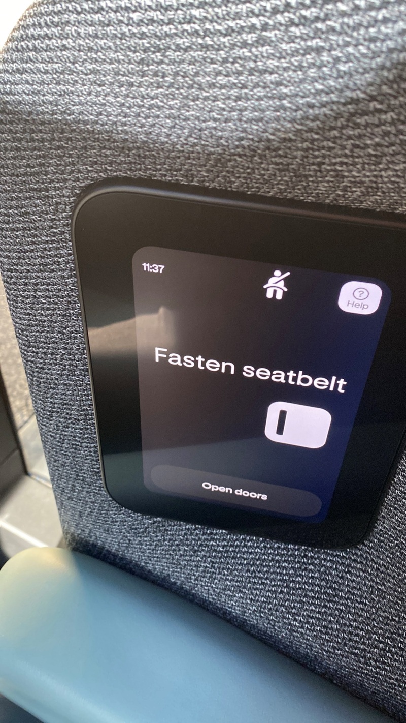 30分程待機するとアプリに表示された車両が到着し、乗車開始。車内のモニターでシートベルト着用などの案内が表示され、操作は非常にシンプルです。