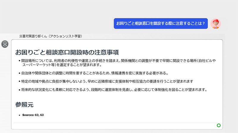 杉山:さらに工夫したのは、災害対応では年々ツールや仕組みが変わるので、学習させた内容の中にも新しい記録と古い記録があります。そこはチューニングをして、新しい記録から引っ張ってきて、過去の記録は参考として扱うようにしました。そうした調整も、求める回答に近づけるうえで大きかったと思っています。