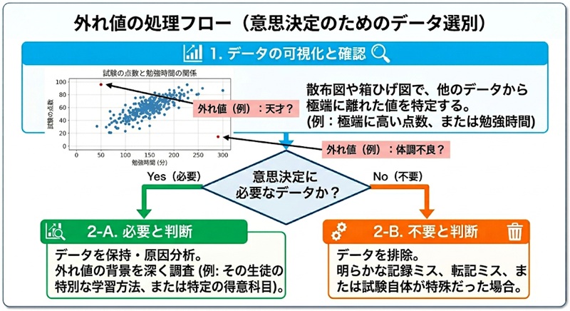 このように、外れ値はその背景までを調査したうえで適切に処理する必要があります。