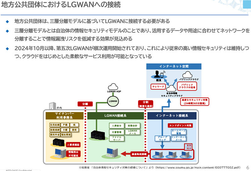 次に、自治体ネットワークの基本構成である三層分離モデルについて解説しました。