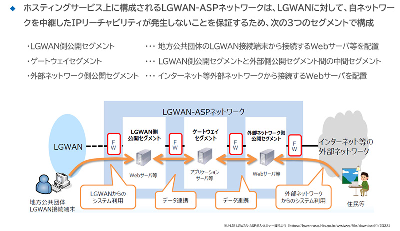 LGWAN-ASPの構成では、以下の3つのセグメント構成が前提となります。