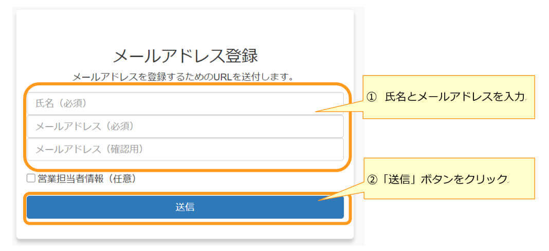 - 登録フォームよりメールアドレスを登録してください。すぐに申し込みフォームのURLをメールで送付します。