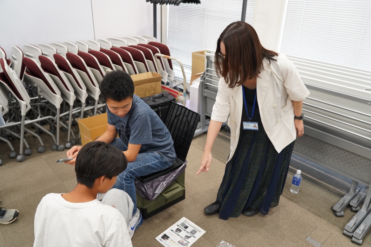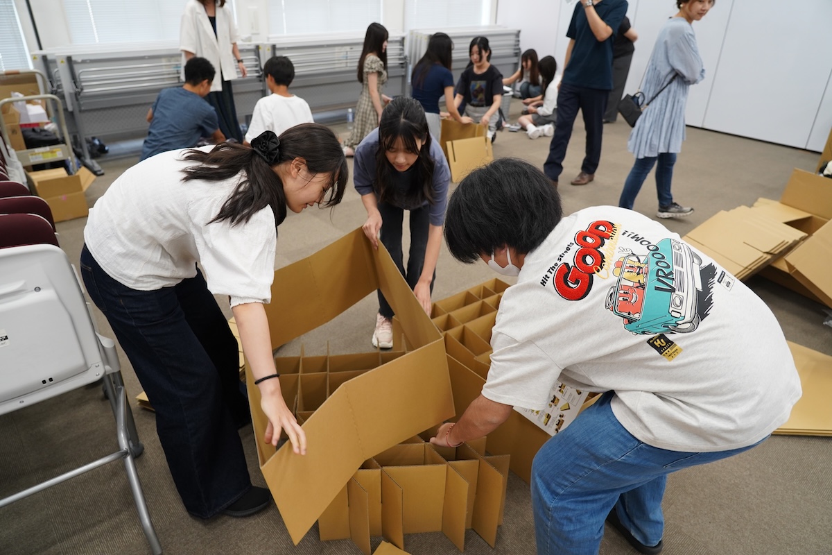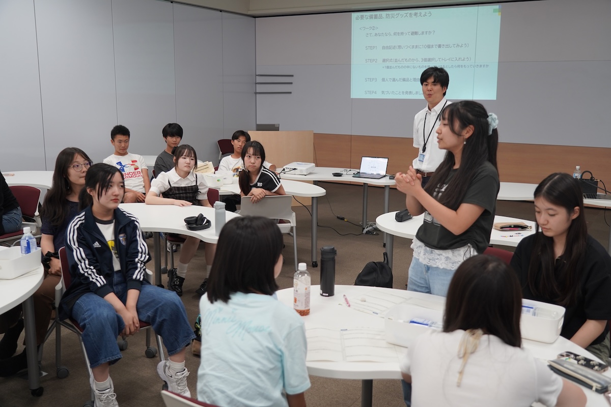 グループに分かれて、必要な防災グッズを揃える際のポイントを検討したり、段ボールベッドの組み立てや、避難所の課題を想像して、解決策を議論したりします。