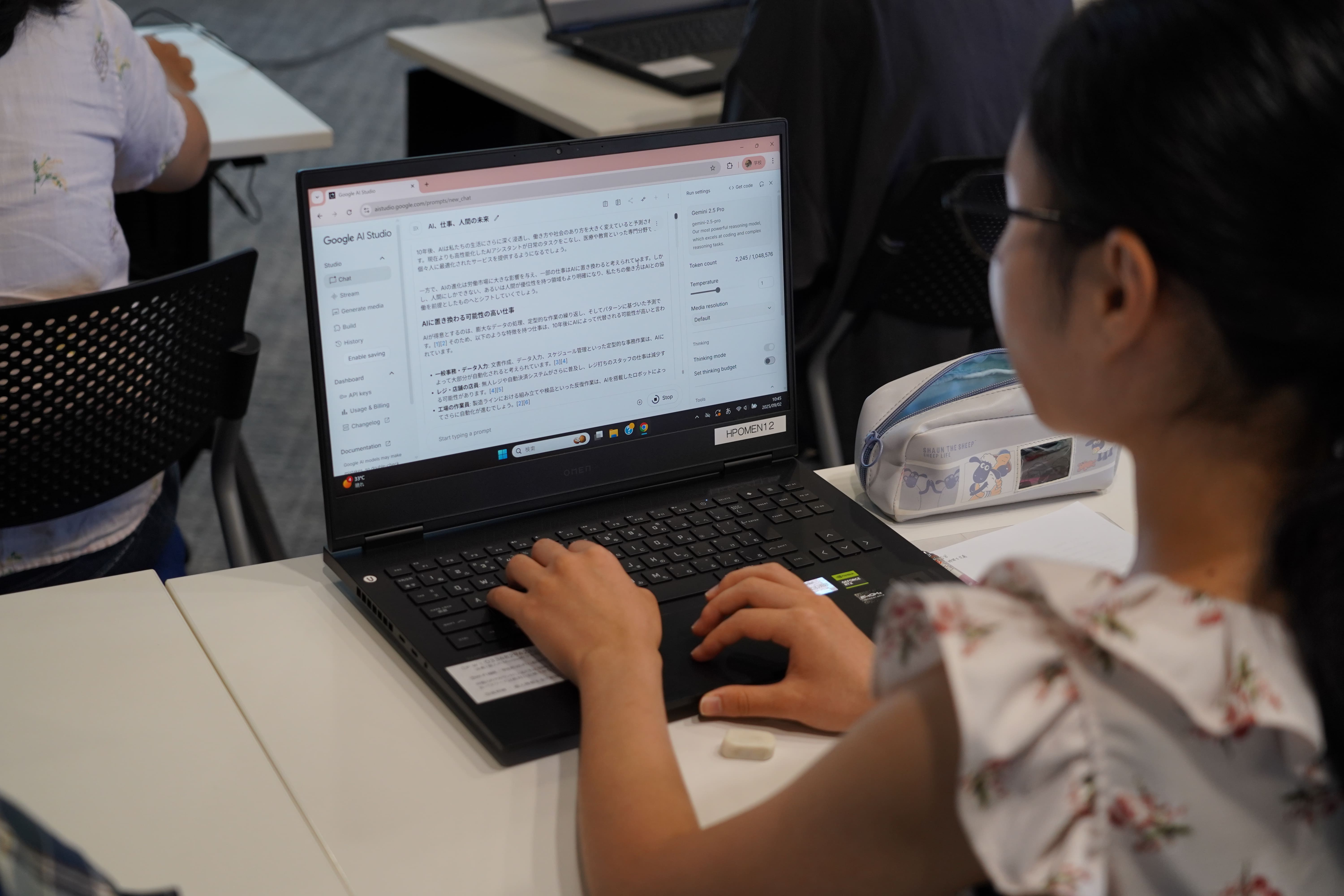 本ワークショップは、生成AI活用セッションと探究セッションの二部構成です。生成AIの理解にとどまらず、デザイン思考を取り入れた課題解決型の学びを通じて、「AIとどう共創し課題を解決するか」を探究し、生徒の深い学びに繋がるプログラムを提供します。