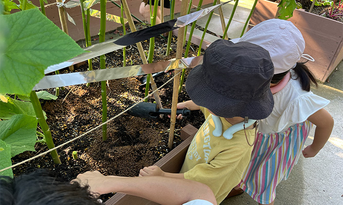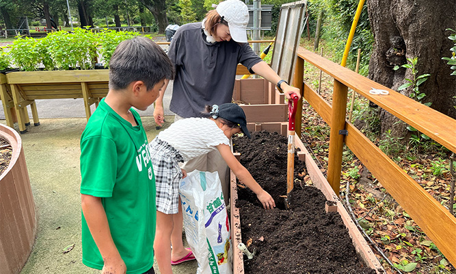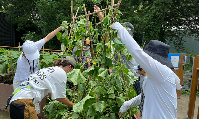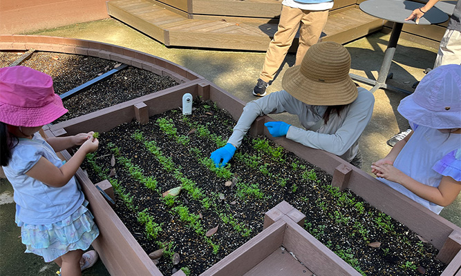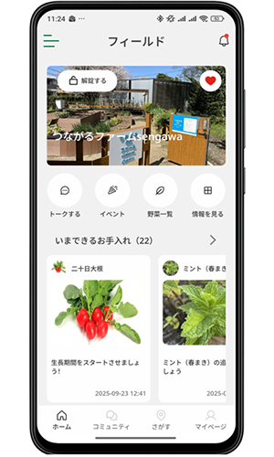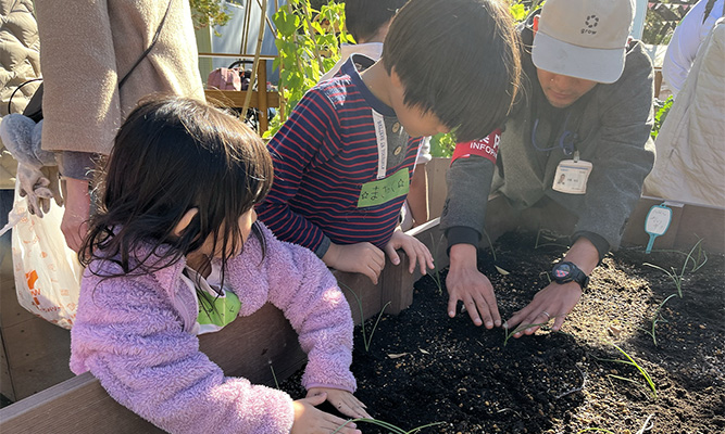 - つながる∞ファームsengawaにて野菜の共同栽培への参加(専用栽培ガイドアプリを活用した種まき、水やり、収穫など)