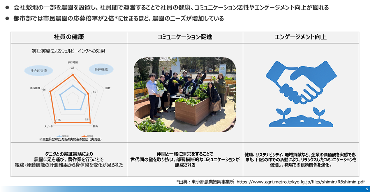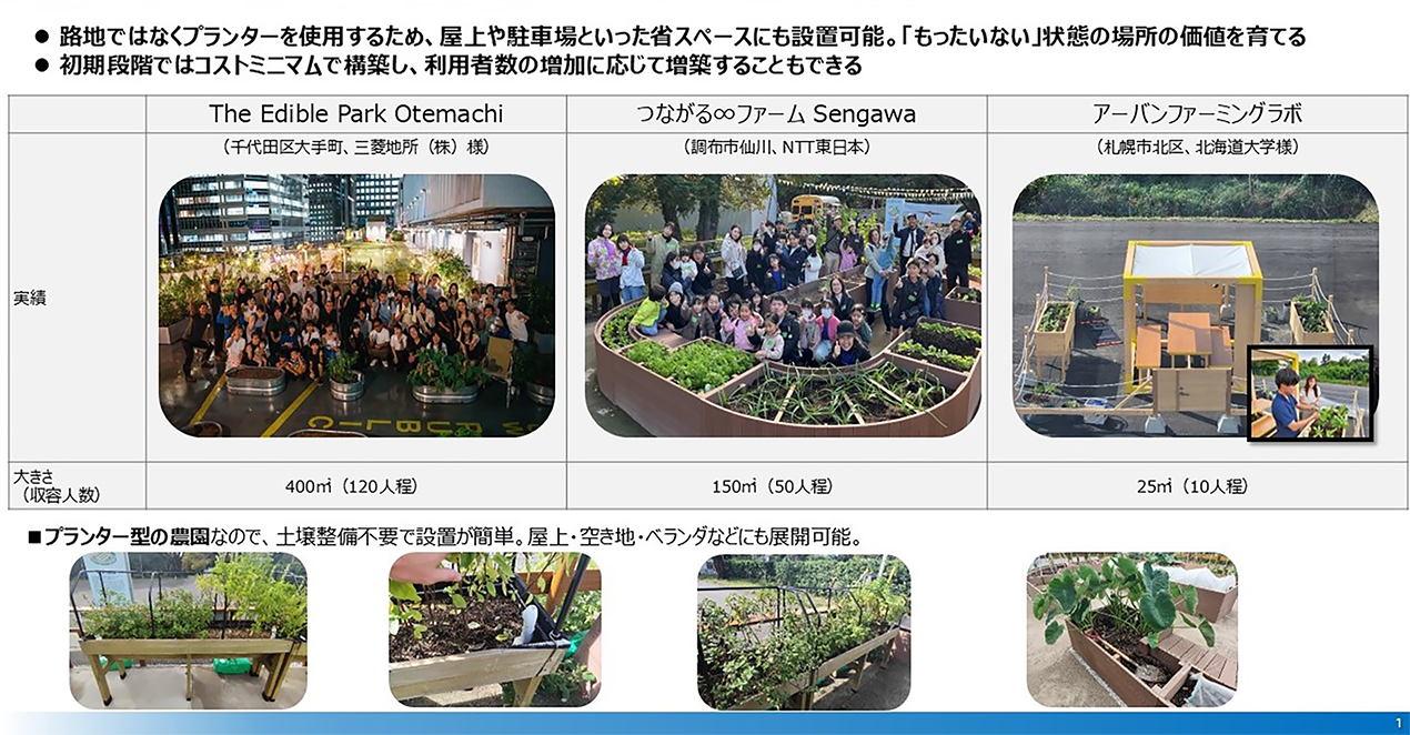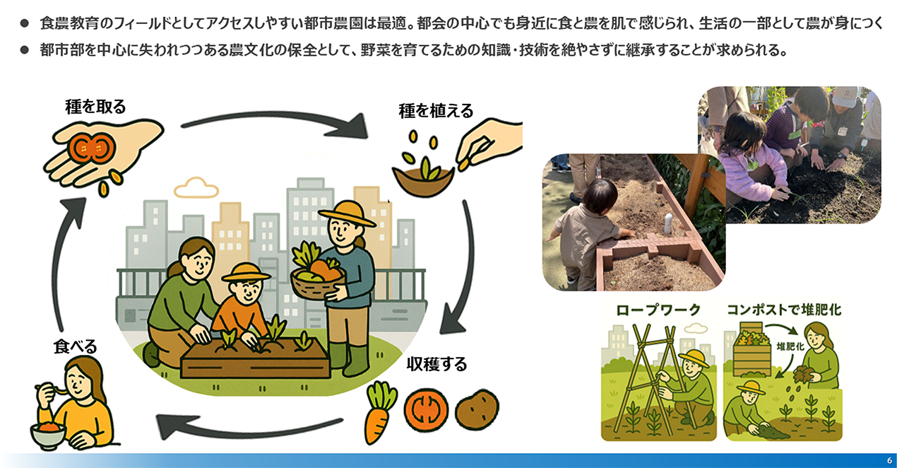 ビルの屋上、ベランダなどの遊休地を活用し、地域活性、食農教育、SDGs、ウェルネス、まちづくり、