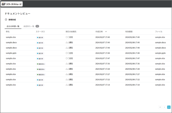 コワークストレージ上で請求書や提案書、社内共有資料などのドキュメントを選び、簡単な操作で確認・承認依頼の作成が可能です。
