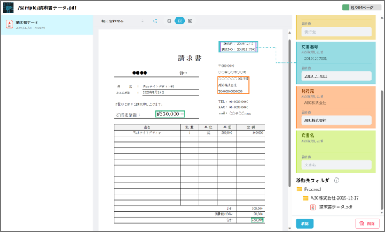 見積書・請求書・契約書などといった電子帳簿保存法に関わるファイルを自動的に仕分けることで大幅に稼働を軽減します。