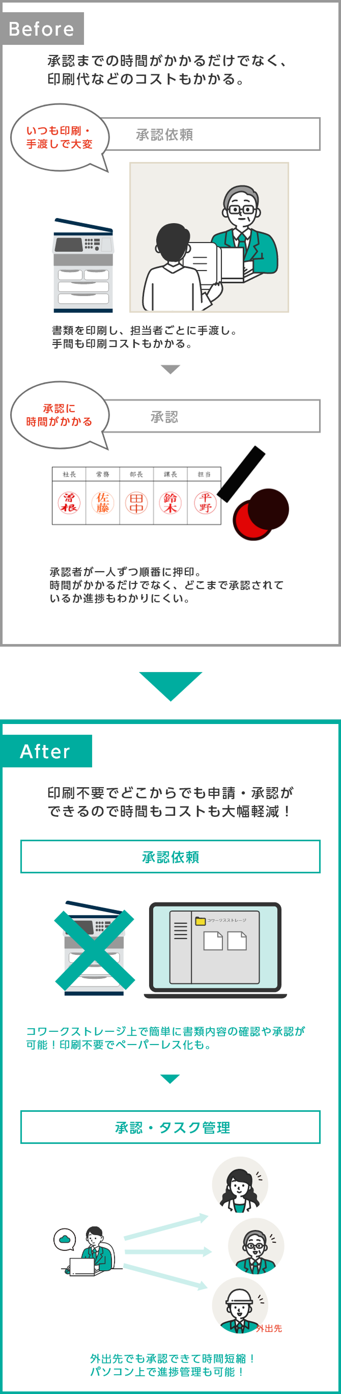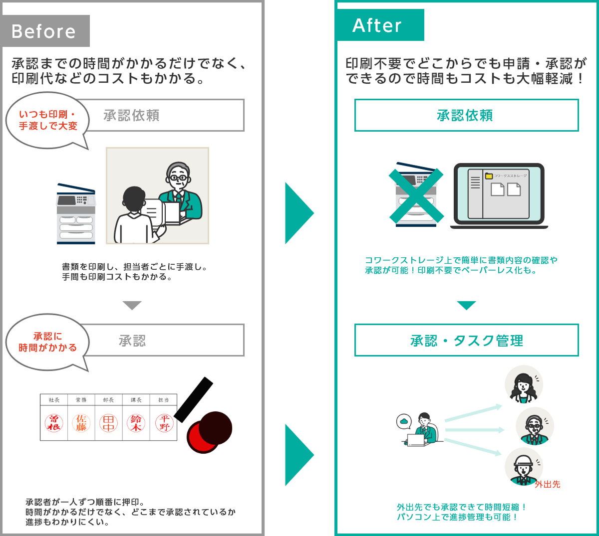 これにより、確認・承認依頼にかかる時間を短縮し、本来業務に使える時間を増やすことができるようになります。