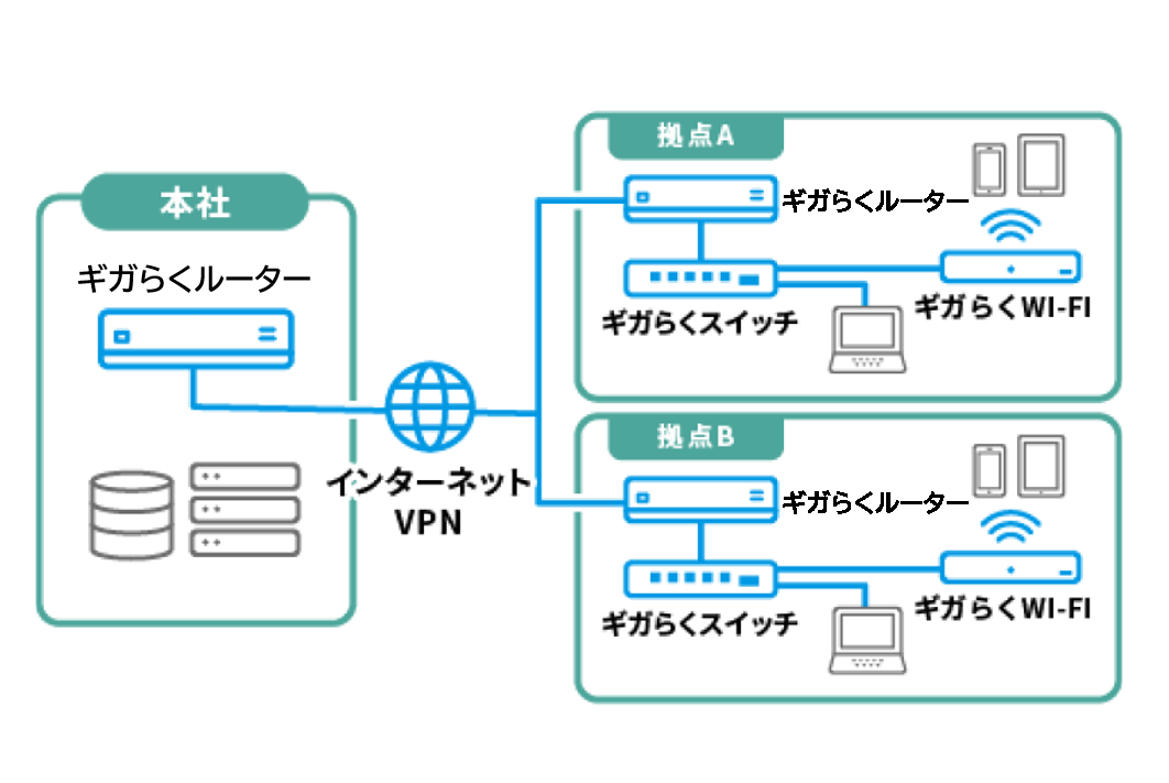 複数拠点でのルーター導入や、本社-支店間での共有サーバや