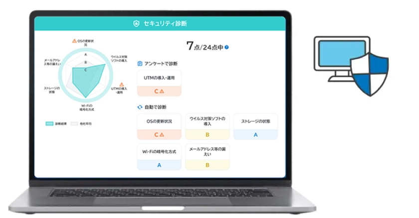 OS更新などの情報セキュリティ対策状況を自動で診断。