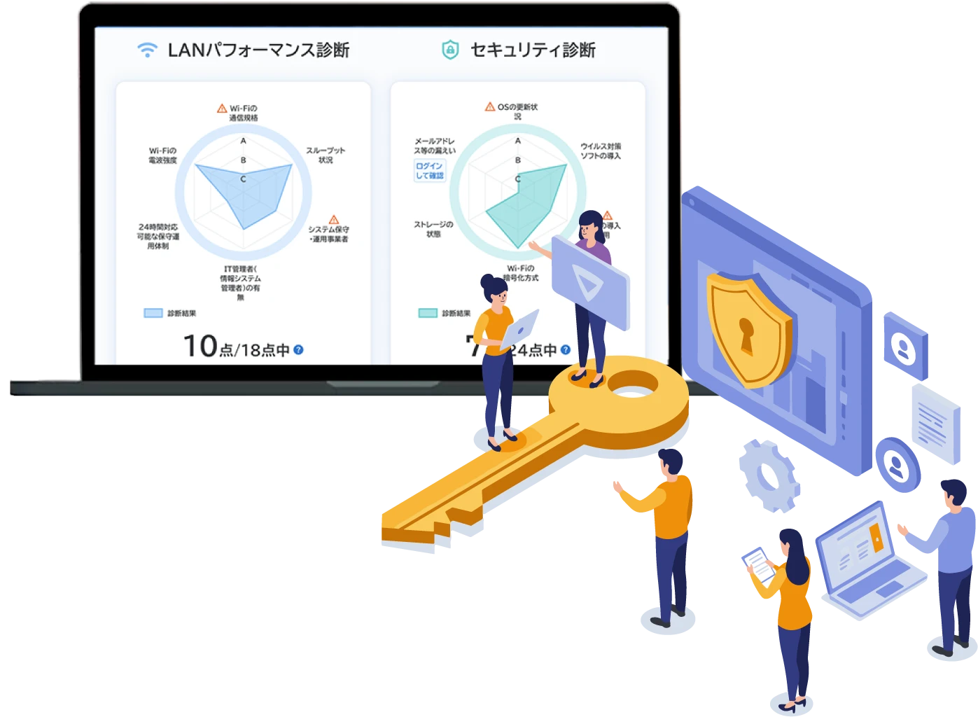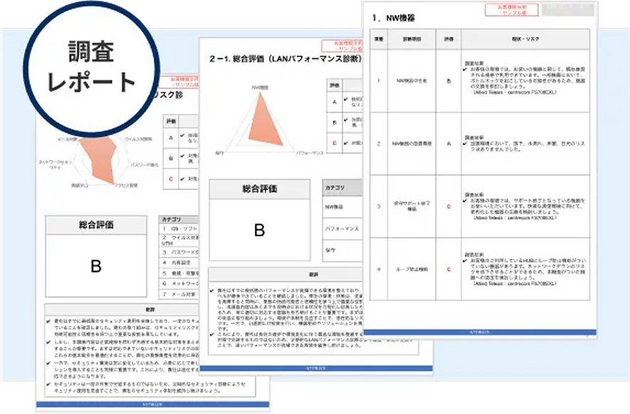 調査結果やヒアリングを元に、ネットワークや情報セキュリティの現状を診断!