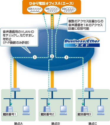 • NTT東日本のIP電話サービス「ひかり電話オフィスA(エース)」を複数拠点でご利用になる場合や、音声とデータを合わせてご利用になる場合には、本オプションが必要となります。