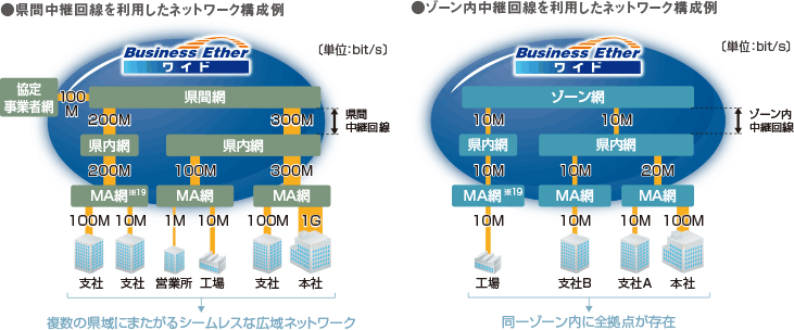 また、同一ゾーン内に拠点がある場合、お客さまの構成に合わせて「県間中継回線」と「ゾーン内中継回線」のいずれかを選択することができます※18