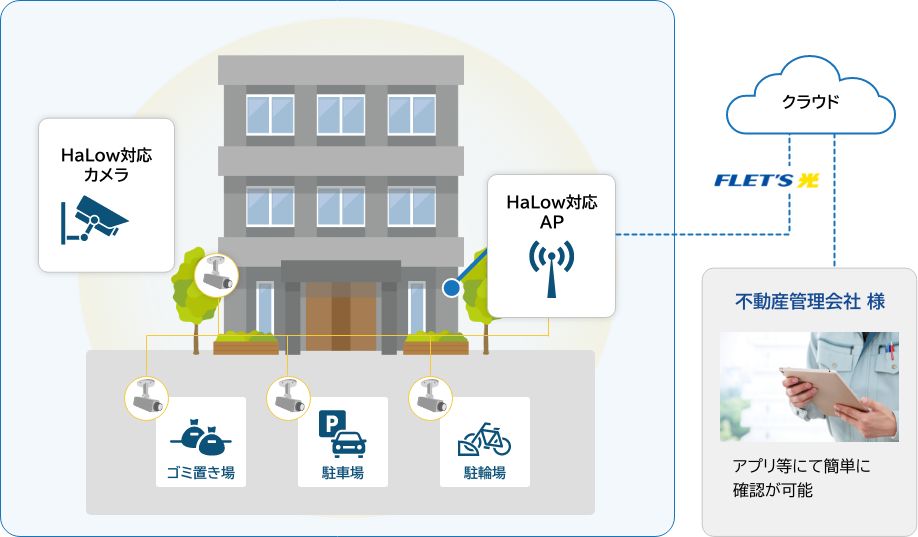 各所に監視カメラを設置、1棟まるごとHaLowでカバー