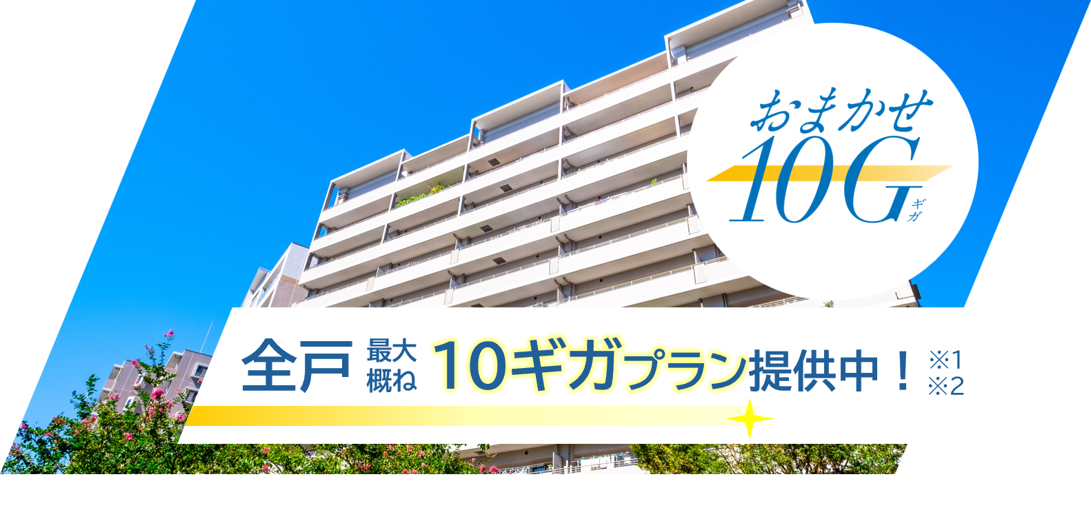 ◎「フレッツ 光クロス」提供エリア内で「フレッツ 光ネクスト ギガマンション・スマートタイプ 全戸加入プラン」導入物件の場合、入居者さまのご要望により「フレッツ 光クロス 戸毎加入プラン」のご提供が可能です。ご利用には入居者さまからの個別のお申し込みが必要です(初期費用・月額利用料がかかります。費用は入居者さまへのご請求となります)。また、入居者さまご自身によるプロバイダサービスのご契約が必要です(別途月額利用料等がかかります)。