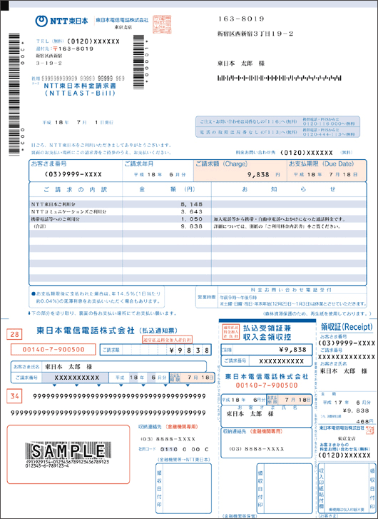 支払日ごとに請求書と電話番号別明細内訳書を送付します。利用料