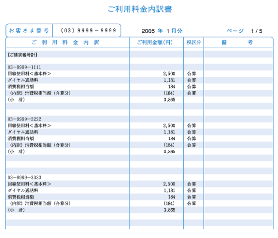 複数回線の電話請求書を1通にまとめてお届け 一括請求