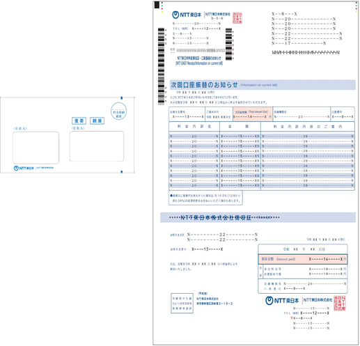 現在書面で発行しております「料金請求書」や「口座振替のお知らせ」につきましては、従来どおりの様式で引き続き書面で発行します。