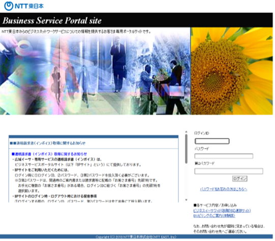 NTT東日本の広域イーサ・専用サービスの適格請求書は、「Business Service Portal site」 より、ダウンロードいただく形式で提供しております。