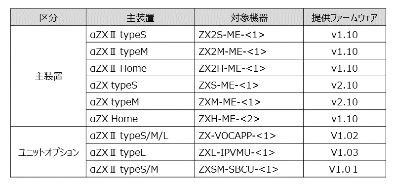 ■対象機器・提供ファームウェア